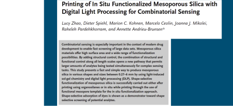 Please check out our new article on Printing of In Situ Functionalized Mesoporous Silica withDigital Light Processing for Combinatorial Sensing