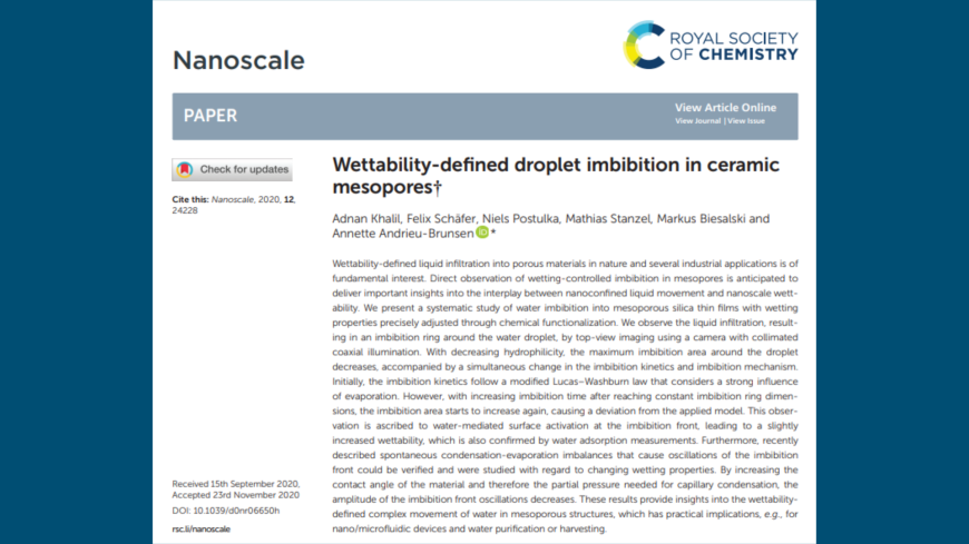 Check out our new publication on water imbibition into mesoporous silica thin films with different wettig properties .