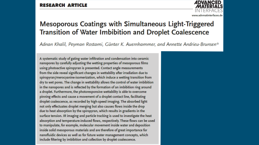 Our article on gating water infiltration and condensation in ceramic nanopores via the functionalization with photoactive spiropyrane has been published.